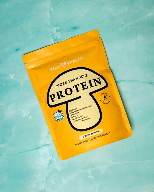 Crafted with organic functional mushroom extracts, our blend brings a natural and innovative edge to your daily nutrition, setting a new standard in protein supplementation.